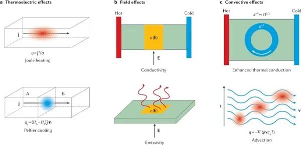 (a)電流會(huì)引起焦耳熱或珀耳帖冷卻。