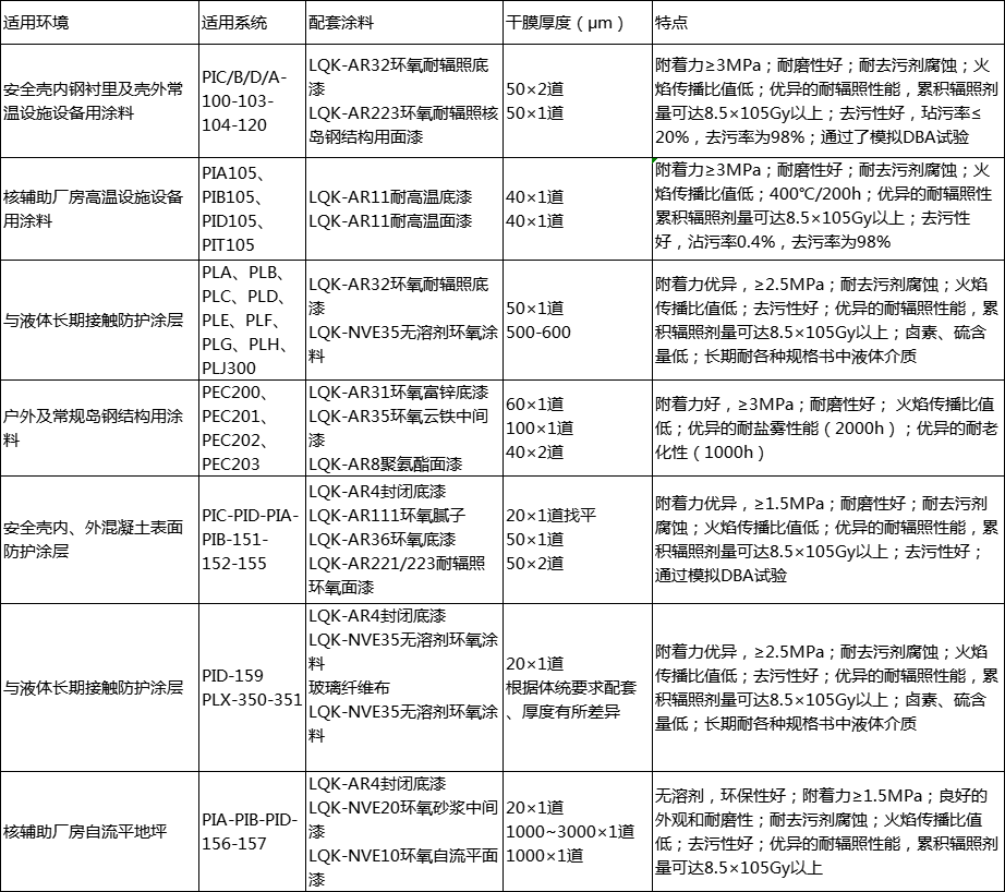 應(yīng)用部位:安全殼外混凝土砼面;核輔助廠(chǎng)房常溫設(shè)施設(shè)備;核輔助廠(chǎng)房混凝土砼面