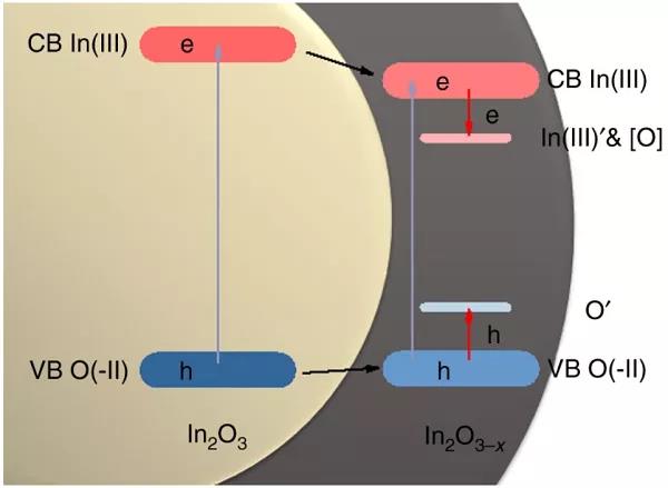 化學計量比氧化銦(In2O3)的納米構(gòu)造形式已經(jīng)被證明是二氧化碳氣相加氫反應的高效催化劑。在光或者熱的幫助下,這些轉(zhuǎn)變都可得以推進;然而淺黃色氧化銦有限的光學吸收強度卻阻止其進一步應用發(fā)展。因此,為了更好地利用太陽能的光和熱,黑色的氧化銦可能具有更大的優(yōu)勢。