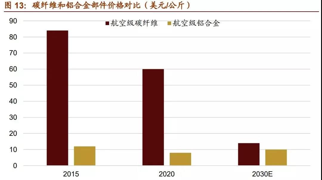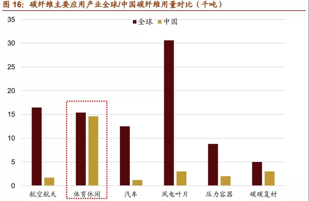 此外,碳纖維在其他應用領域還有很大潛力可以挖掘。以主要競爭對手鋁合金為例,碳 纖維和鋁合金同屬替換鋼材的輕量化材料,碳纖維在強度、化學穩(wěn)定性等性能上都占優(yōu), 并且在飛機部件、高性能汽車車架、自行車架等產品相比鋁合金都有更好的表現(xiàn)。但受 累于高昂的價格,目前碳纖維應用大多局限于高附加值產品。2016 年世界鋁材年需求 量約是碳纖維的 500-600 倍,行業(yè)產值約為 50 倍,且受益于汽車工業(yè)的發(fā)展鋁材需求 近年也在快速增長。隨著技術的進步壓低碳纖維的成本,未來碳纖維還有廣闊的市場空 間。