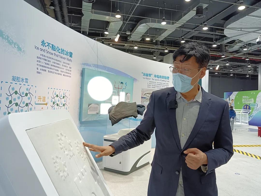 近日,在中國科技館,張凱團(tuán)隊制備的凝膠冰雪冰板在“科技冬奧”主題展上亮相。展臺不大,但吸引了不少路過的觀眾。大家出于好奇,就會伸手摸一摸。小朋友特別喜歡,半個身子撲上去,大叫著:“涼的,涼的,還滑滑的!這是冰呀!”