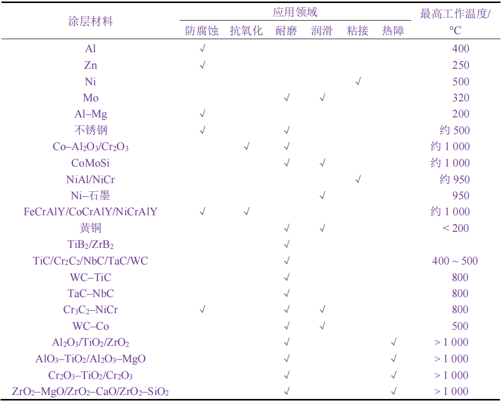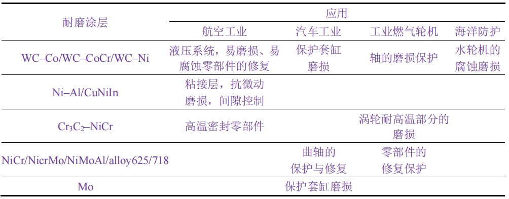 ↓↓不同熱噴涂耐磨涂層的應(yīng)用領(lǐng)域