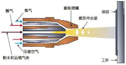 超音速空氣燃料噴涂(HVAF)是在超音速火焰噴涂(HVOF)技術(shù)的基礎(chǔ)上發(fā)展起來(lái)的,兩種噴涂技術(shù)的主要不同點(diǎn)是HVAF采用壓縮空氣為燃料代替氧氣,兩者在火焰溫度和粒子飛行速度方面也都有一定差異。