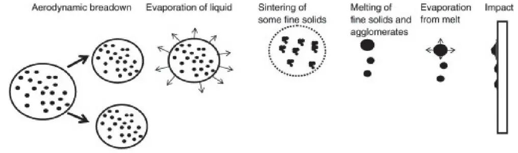 影響熱噴涂涂層性能的主要因素是原料在噴涂焰流中的熔融狀態(tài)(溫度)和飛行速度(微粒的動(dòng)能)。在大氣等離子噴涂之后出現(xiàn)的各種熱噴涂技術(shù),無(wú)一不是通過(guò)提高微粒溫度或速度來(lái)獲得性能優(yōu)異的涂層。此外,由于等離子噴涂、爆炸噴涂等技術(shù)無(wú)法使用納米粉體進(jìn)料,在制備納米結(jié)構(gòu)涂層時(shí)只能通過(guò)造粒將其制為微米級(jí)粉體用于噴涂,噴涂工藝和涂層性能均受到限制。因此,研究人員還開(kāi)發(fā)了懸浮液等離子噴涂(SSPS),以便獲得特定組織的納米結(jié)構(gòu)涂層。