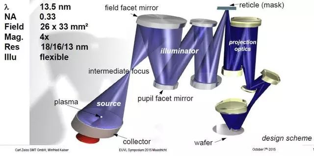 根據(jù)瑞利公式(分辨率=k1·λ/NA),這么短的波長可以提供極高的光刻分辨率。在1985年左右已經(jīng)有半導(dǎo)體行業(yè)科學(xué)家就EUV技術(shù)進(jìn)行了理論上的探討并做了許多相關(guān)的實(shí)驗(yàn)。