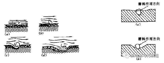 (1)化學(xué)腐蝕磨損—在氣體介質(zhì)中的腐蝕磨損實際上以氧化磨損為主,主要是金屬表面與氣體介質(zhì)發(fā)生氧化反應(yīng),在表面生成氧化膜,隨后在磨料或微凸體作用下被去除的過程。根據(jù)膜的機(jī)械性質(zhì)不同,氧化磨損模型主要有脆性氧化膜和氧化磨損模型和韌性氧化膜的氧化磨損兩類。
