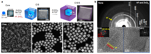 光學(xué)超表面開始進入集成設(shè)備,可以增強和控制光波的發(fā)射、調(diào)制、動態(tài)整形和檢測。在這項研究中,三星先進技術(shù)研究院&斯坦福大學(xué)發(fā)現(xiàn)有機發(fā)光二極管(OLED)顯示器的體系結(jié)構(gòu)可以通過引入納米圖案的超表面反射鏡而完全重新設(shè)想。 在最終的meta-OLED顯示器中,不同的metasurface圖案定義了紅色,綠色和藍色像素,并確保從有機白色發(fā)光體中優(yōu)化提取這些顏色。這種新的體系結(jié)構(gòu)有助于創(chuàng)建使用可縮放納米壓印光刻技術(shù)的新興顯示應(yīng)用(例如增強現(xiàn)實)所需的超高像素密度(每英寸> 10000像素)的設(shè)備。相對于標準的彩色濾光白色OLED,所制造的像素還具有兩倍的發(fā)光效率和出色的色純度。Metasurface-driven OLED displays beyond 10000 pixels per inch.(Science, 2020, DOI:10.1126/science.abc8530)2.三星先進技術(shù)研究院Nature:高效穩(wěn)定的藍色量子點發(fā)光二極管