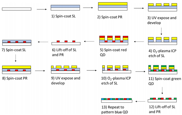 實驗物理學(xué)的長期挑戰(zhàn)之一是觀察室溫下超導(dǎo)性。近來,已經(jīng)在高壓下的幾種系統(tǒng)中報道了富氫材料中的高溫常規(guī)超導(dǎo)性。導(dǎo)致室溫超導(dǎo)的一個重要發(fā)現(xiàn)是硫化氫(H2S)到H3S的壓力驅(qū)動歧化,最終轉(zhuǎn)變溫度為155吉帕的203開爾文。 H2S和CH4都容易在較低壓力下與氫混合形成客體-主體結(jié)構(gòu),并且在4千兆帕斯卡下具有可比的大小。通過將甲烷低壓引入用于H3S的H2S + H2前驅(qū)體混合物中,分子交換成為一大批富含氫和 H2夾雜物的范德華固體的交換;在極端條件下,這些客體結(jié)構(gòu)成為超導(dǎo)化合物的基礎(chǔ)。羅徹斯特大學(xué)&英特爾報道了從元素前體開始的光化學(xué)轉(zhuǎn)變的碳氫化硫碳氫化物系統(tǒng)中的超導(dǎo)性,在267±10吉帕斯卡下實現(xiàn)的最大超導(dǎo)轉(zhuǎn)變溫度為287.7±1.2開爾文。在金剛石砧室的寬壓力范圍內(nèi)(從140到275吉帕斯卡)觀察到超導(dǎo)狀態(tài),并且轉(zhuǎn)變溫度在220吉帕斯卡以上時急劇上升。根據(jù)Ginzburg的研究,零電阻,高達190吉帕的磁化率以及在高達9特斯拉的外部磁強和約62特斯拉的臨界磁強下降低轉(zhuǎn)變溫度,從而建立了超導(dǎo)性。氫的光,量子性質(zhì)限制了通過X射線散射技術(shù)對系統(tǒng)進行結(jié)構(gòu)和化學(xué)計量的確定,但是拉曼光譜用于探測金屬化之前的化學(xué)和結(jié)構(gòu)轉(zhuǎn)變。在這里的三元系統(tǒng)中引入化學(xué)調(diào)節(jié)可以在較低壓力下保持室溫超導(dǎo)性。Room-temperature superconductivity in a carbonaceous sulfur hydride.(Nature, 2020, DOI:10.1038/s41586-020-2801-z)6.京東方Nano research:通過光刻方法制造的高分辨率、全色量子點發(fā)光二極管顯示器
