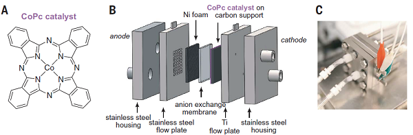 圖8 含有鈷基分子電催化劑的薄膜液流反應(yīng)器[8]