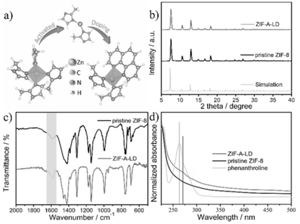 圖9 鄰二氮雜菲摻雜ZIF-8的結(jié)構(gòu)及其表征[9]