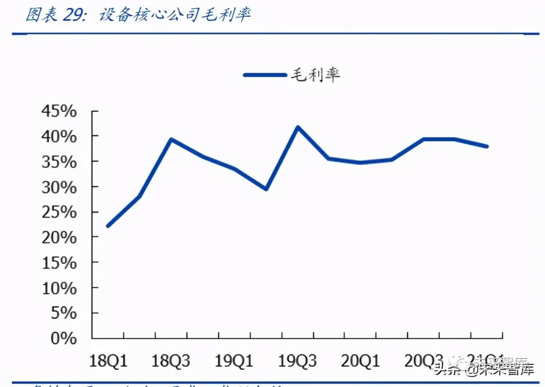 2020Q4 及 2021Q1 設備收入、利潤快速增長,國產替代持續(xù)深化。設備行業(yè)核心公 司(中微公司、北方華創(chuàng)、至純科技、精測電子、長川科技、晶盛機電、華峰測控、萬 業(yè)企業(yè))2020Q4 營業(yè)收入 37 億元,同比增長 33%;歸母凈利潤 5.55 億元,同比增長 49%。設備行業(yè)核心公司 2021Q1 營業(yè)收入 42.05 億元,同比增長 27%;歸母凈利潤 7.6 億元,同比增長 37%、設備行業(yè)持續(xù)處于高速增長,國產替代空間快速打開,國內 核心設備公司成長可期。