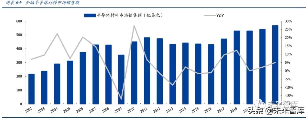此外看到當前半導體市場由于 5G 時代到來,進而推動下游電子設備硅含量的大增,帶 來的半導體需求的快速增長,直接推動了各個晶圓廠商的擴產規(guī)劃(臺積電、聯電、華 虹、華潤微等)。而芯片的制造更是離不開最上游的材料環(huán)節(jié),因此我們有望看到全球 以及中國半導體市場規(guī)模的飛速增長。