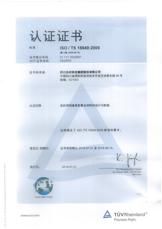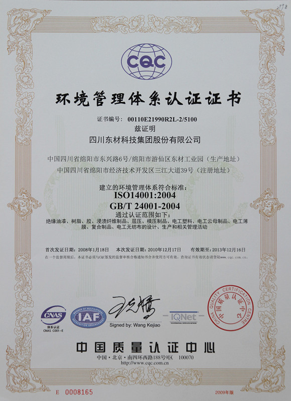 東材科技在國內(nèi)同行業(yè)企業(yè)當(dāng)中率先通過國際ISO9001的質(zhì)量體系認(rèn)證,通過ISO10012國際計(jì)量體系、ISO14001環(huán)境管理認(rèn)證體系、OHSAS18001職業(yè)健康安全體系、GBT 29490知識產(chǎn)權(quán)管理體系、GBT23331能源管理體系認(rèn)證企業(yè)、IATF16949汽車質(zhì)量管理體系認(rèn)證,不僅使公司產(chǎn)品質(zhì)量保障體系達(dá)到國際化的新標(biāo)準(zhǔn),而且為產(chǎn)品質(zhì)量的穩(wěn)定提供了強(qiáng)有力的保障。